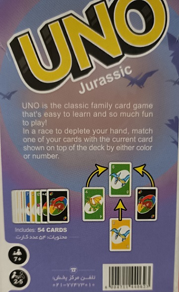 اونو ژوراسیک نسخهای جذاب و متفاوت از بازی محبوب خانوادگی UNO است که با تصاویر گونههای مختلف دایناسورها روی کارتها، تجربهای تازه و سرگرمکننده برای کودکان و نوجوانان فراهم میآورد. طراحی بصری این نسخه باعث افزایش علاقهمندی کودکان به بازی شده و آن را به گزینهای مناسب برای جمعهای خانوادگی و دوستانه تبدیل کرده است.
